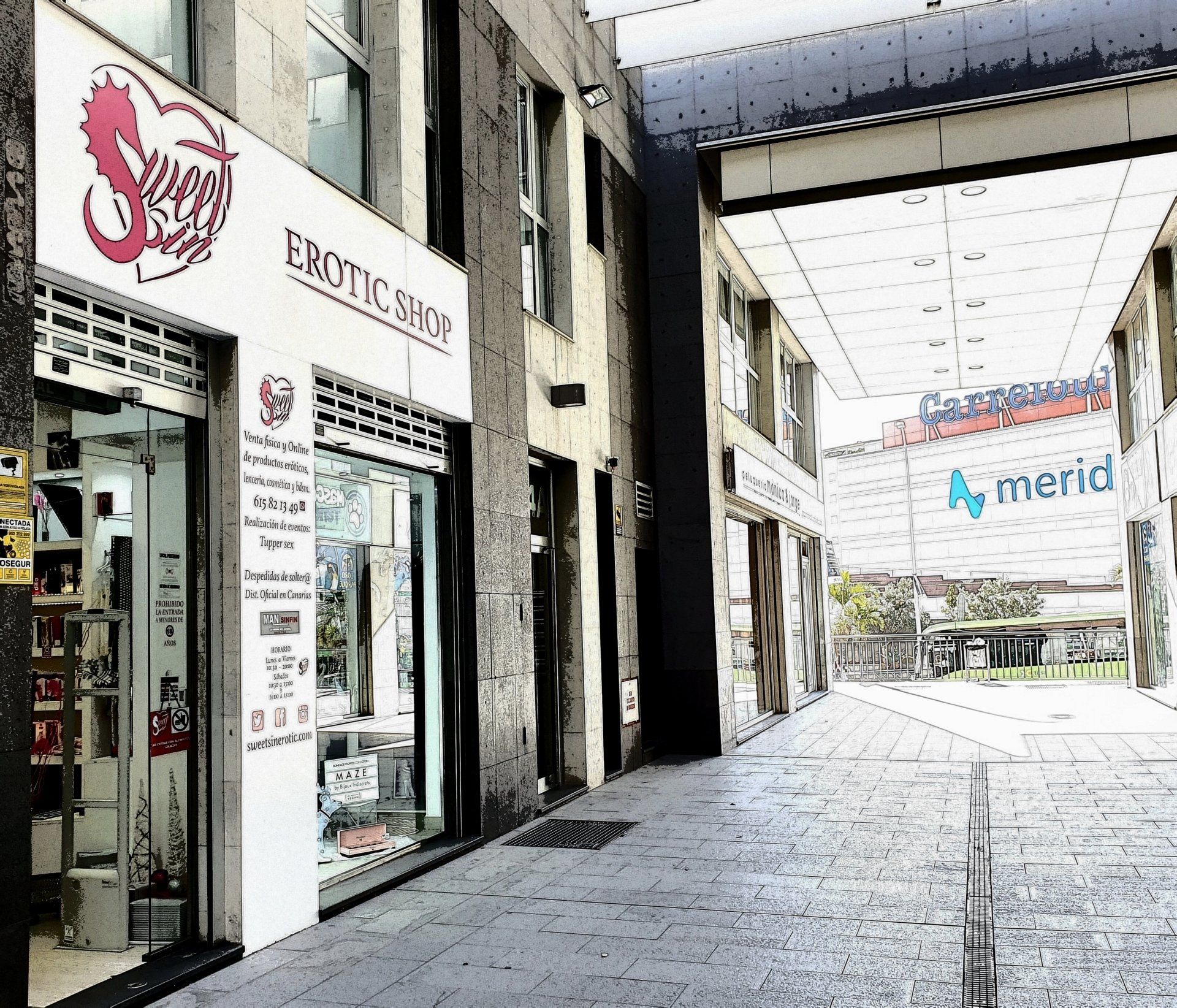 (En la galería comercial situada en frente del Centro Comercial Meridiano)